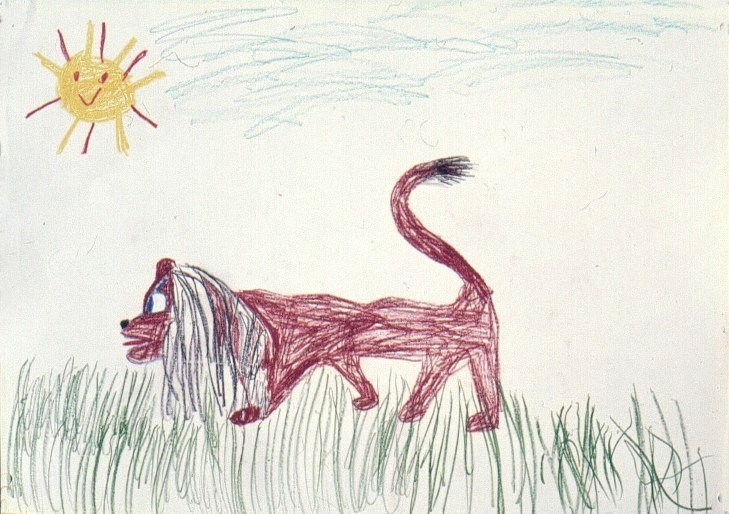 Aquesta representació de l’animal obeeix el cànons corresponents a la seva edat, però el sentit de l’observació de les formes -vegeu el perfil de l’esquena, per exemple-, tan poc geomètriques i tan orgàniques, els ritmes dels traços de l’herba i del cel, l’expressió de moviment contingut, denoten que ens trobem davant d’un infant molt dotat per l’expressió plàstica.