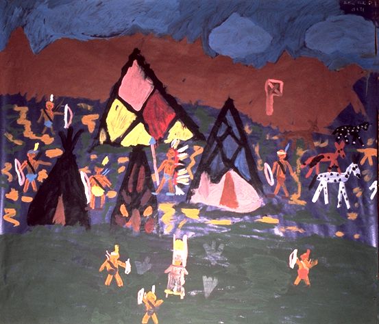 - Tema: Lliure, “Campament hindi”. A causa de la mida del suport i de l’abundància de detalls, va haver d’esmerçar-hi força sessions.