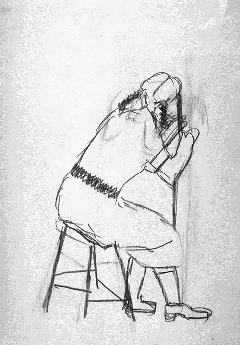 Encara que el cenyidor i les trenes ens puguin fer pensar que som davant d’un dibuix treballat a la manera del que acabem de veure, aquest és un treball en què el llapis s’expressa d’una manera estrictament lineal. Aquí, l’autor utilitza al llapis amb molta sensibilitat: fa més pressió en línies a les quals dóna més importància i prem menys en altres llocs. Ha tingut dubtes i ha rectificat els errors emprant la goma. En canvi, en dibuixar el tamboret, acaba el treball sense fixar-se gaire en la disposició dels travessers; no hi ha donat importància.